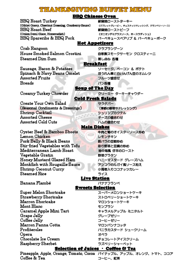 Adults ¥10,500 (with free-flowing sparkling wine) or ¥9,000 (buffet only)