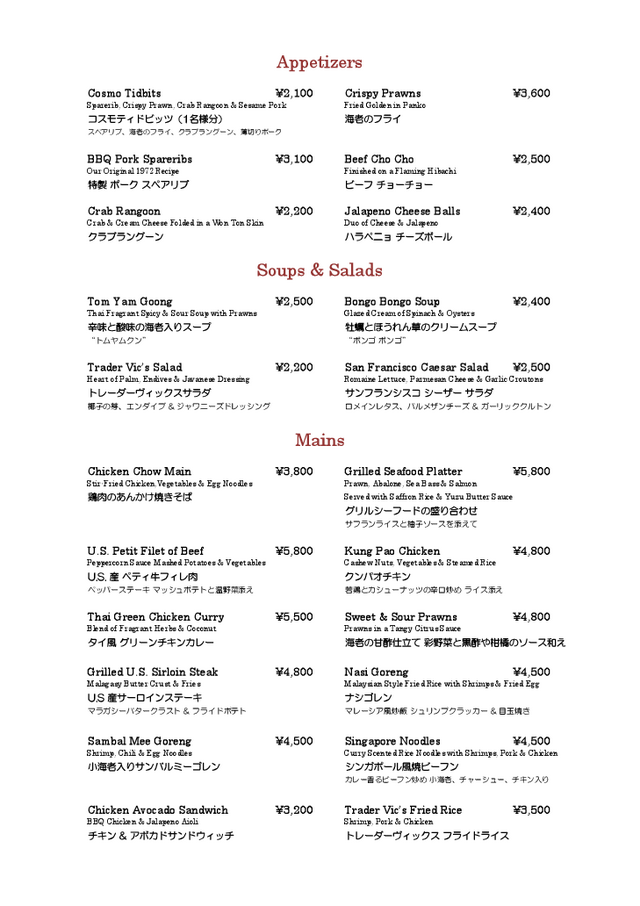 アラカルトメニュー