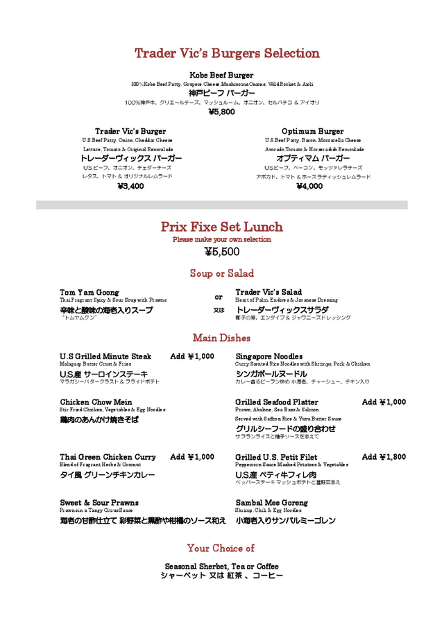 バーガーセレクション、プリフィクスランチ