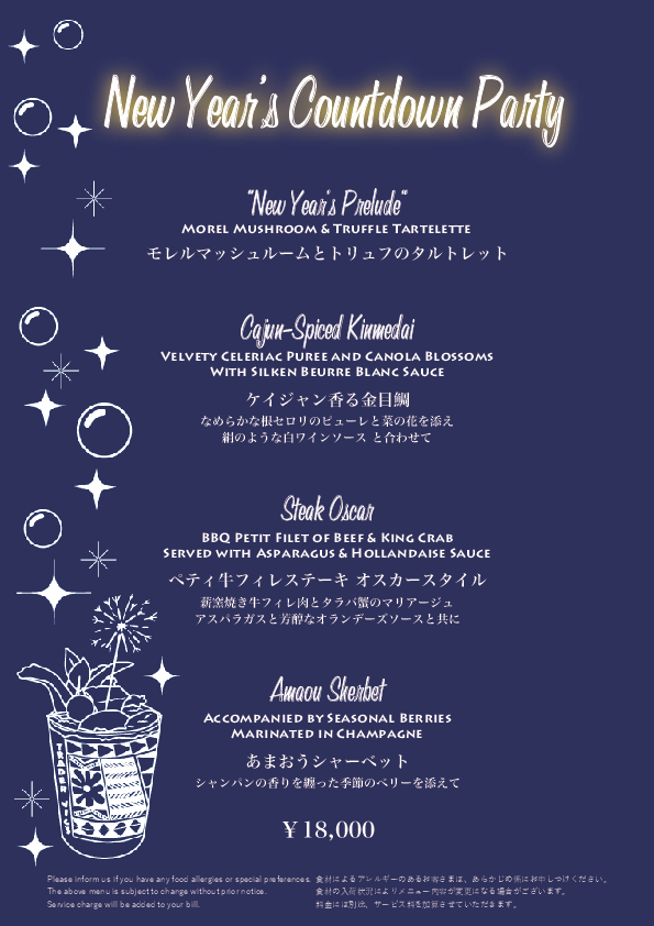 ウェルカムミニマイタイやシェフ特製メニューとともに、タヒチアンダンス鑑賞をしながら、 トレーダーヴィックス 東京で愉しく年越しを! ラッキードローでは、豪華賞品をご用意しております。